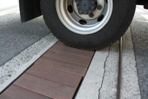 木製のナチュラルな雰囲気なのに車両利用が可能な強度のある溝蓋です。