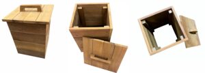 蓋はコバエの発生や内容物の分解を阻害するような乾燥を防ぎますが、天然木の組立製品なので完全密閉とならなず、必要な酸素供給と調湿がなされます。